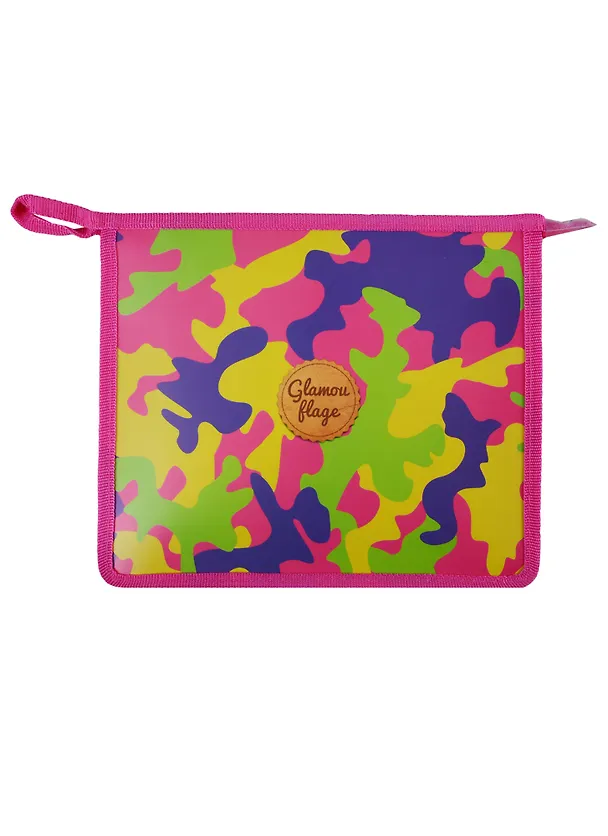 Папка для школьных тетрадей арт.46690/12 ЦВЕТНОЙ КАМУФЛЯЖ (А5, 23.3x20х5, одно отделение, пластик, ширина боковин и дна 5см, молния, УФ печать,