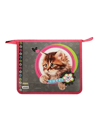 Папка для тетрадей А5 "Милый котенок" на молнии, пластик/ламинат, Silwerhof
