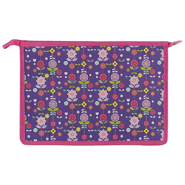 Папка для школьных тетрадей арт.46628/12 ЦВЕТЫ НА СИРЕНЕВОМ (А4, 33x23.3х5, одно отделение, пластик, ширина боковин и дна 5см, молния, УФ печать)