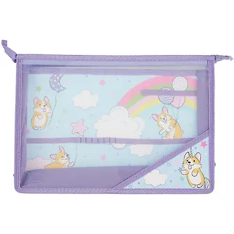 Папка для труда А4 "Игривые корги" 33*23см пластик, молния, внутр.блок для канц.принадлежностей