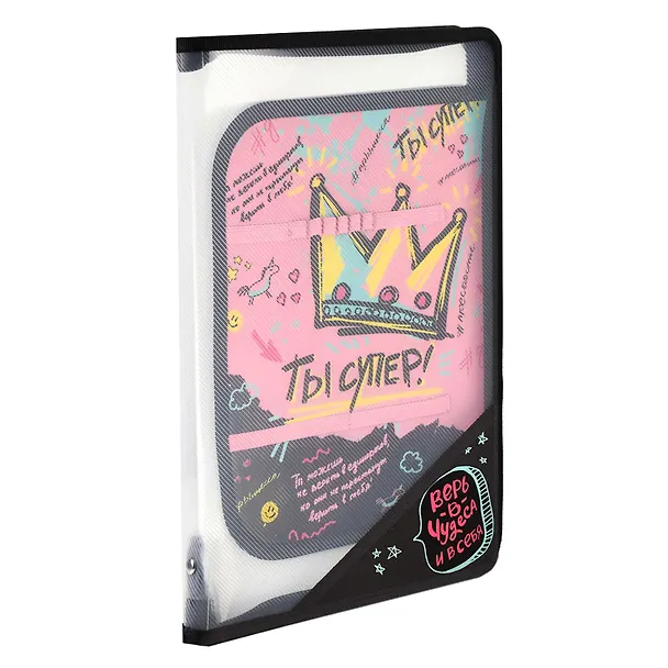 Папка для труда А4 "ТЫ СУПЕР!" 32,8*22,8см, пластиковая, молния с 3х сторон, внутр.блок для канц.принадлежностей
