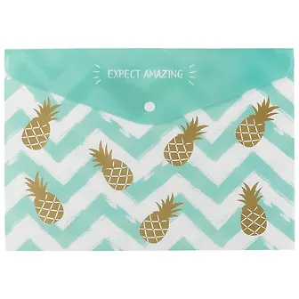 Папка-конверт А4 на кнопке Golden pineapple поможет аккуратно хранить тетради, распечатки, контрольные и важные документы, чтобы они не мялись и не терялись в рюкзаке. Закрывается на удобную кнопку — содержимое надёжно фиксируется и легко достаётся, когда нужно.