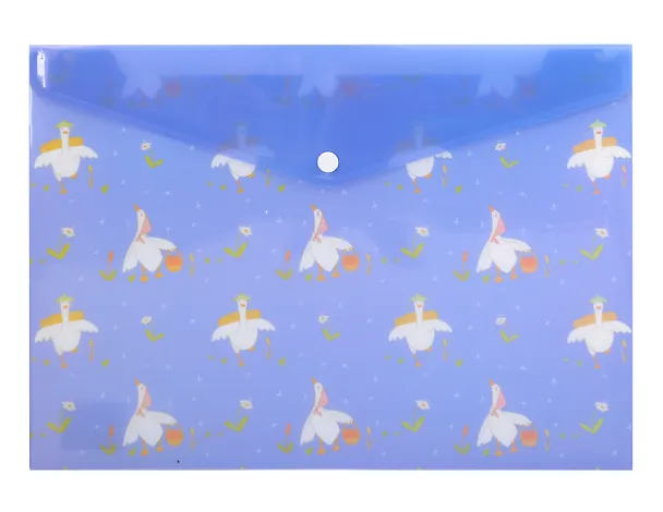 Папка-конверт для листов формата А4 с запасом на кнопке «Гуси», ассорти — милый и практичный способ навести порядок в бумагах. Плотный пластиковый конверт надёжно защищает документы от заломов и случайных брызг, а удобная кнопка фиксирует содержимое, чтобы ни один лист не выпал в дороге. Забавные гуси на обложке поднимают настроение и выделяются среди однотипных папок, а разные варианты оформления в ассорти позволяют выбрать папку под свой стиль. Подходит для учёбы, офиса и хранения домашних документов.