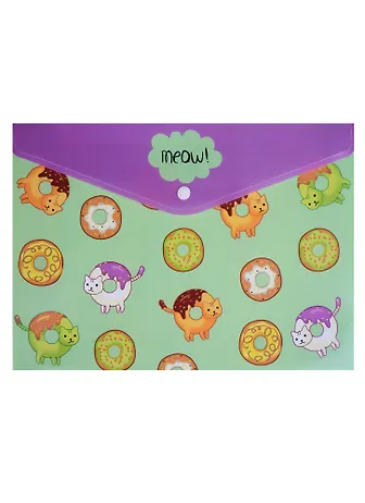 Папка-конверт А4 на кнопке "Кошки-пончики"
