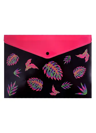 Папка-конверт А4 на кнопке "Неоновые листья"