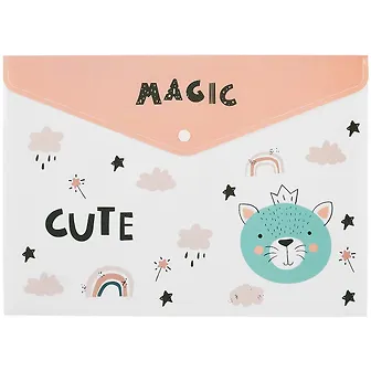 Папка-конверт А4 на кнопке Cute поможет аккуратно хранить тетради, распечатки, договоры и другие бумаги, чтобы они не мялись и не терялись в сумке. Надёжная кнопка фиксирует клапан и защищает содержимое при переноске. Папка выполнена из плотного пластика, который легко протереть при необходимости, а нежный дизайн добавляет немного настроения в учебные и рабочие будни. Подойдёт школьникам, студентам и тем, кто любит порядок в документах.