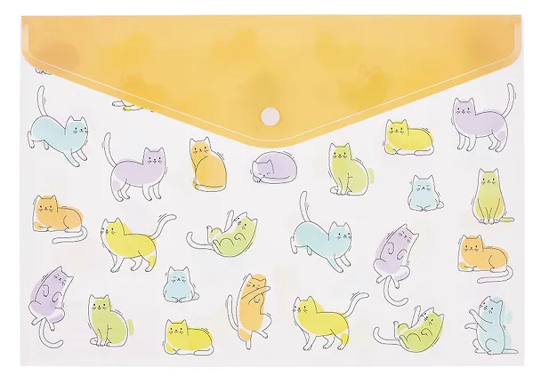 В магазине Читай - Город можно купить замечательную папку-конверт А4 на кнопке "Веселые коты". Папка сделана из качественного пластика, закрывается на кнопку и очень удобная в использовании!!! В ней можно хранить различные документы, бумагу, рисунки формата А. Папка очень прочная, стильная, красивая и реально поднимает настроение.