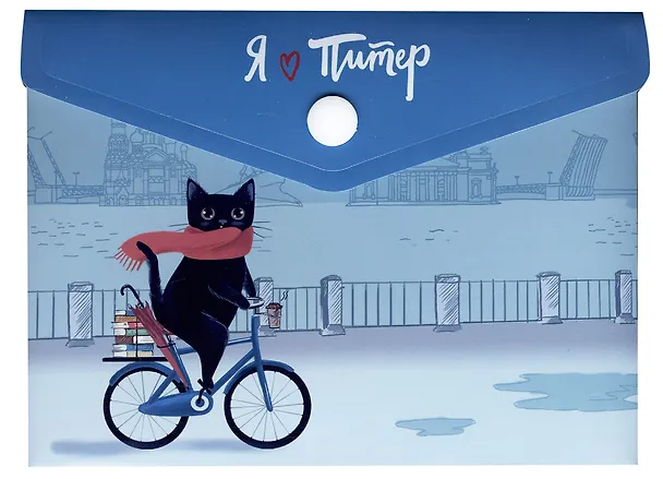 Папка-конверт А6 на кнопке СПб "Котик на велосипеде"