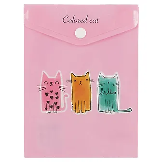 Маленькая папка-конверт – незаменимый спутник путешественника. В неё можно убрать посадочные талоны на самолёт, заранее записанный адрес гостиницы и проездной. Она из пластика и не пропускает влагу. Папку украшает трио разноцветных котят. Разве они не прелесть?