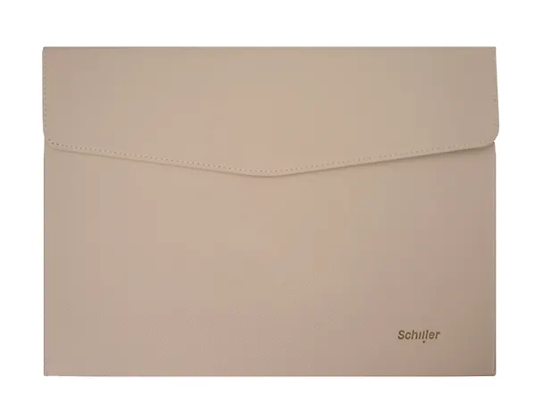 Папка-конверт Schiller на кнопке из бежевого кожзаменителя — стильное и удобное решение для тех, кто ценит порядок и аккуратность. Плотный и приятный на ощупь материал держит форму, надёжно защищает бумаги от заломов, загрязнений, случайной влаги. А потайная кнопка фиксирует содержимое, не позволяя листам выпадать в сумке или рюкзаке.