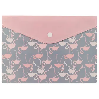 Папка для документов арт.46748/12 ФЛАМИНГО (А5, 24x17, одно отделение, пластик, кнопка, УФ-печать)