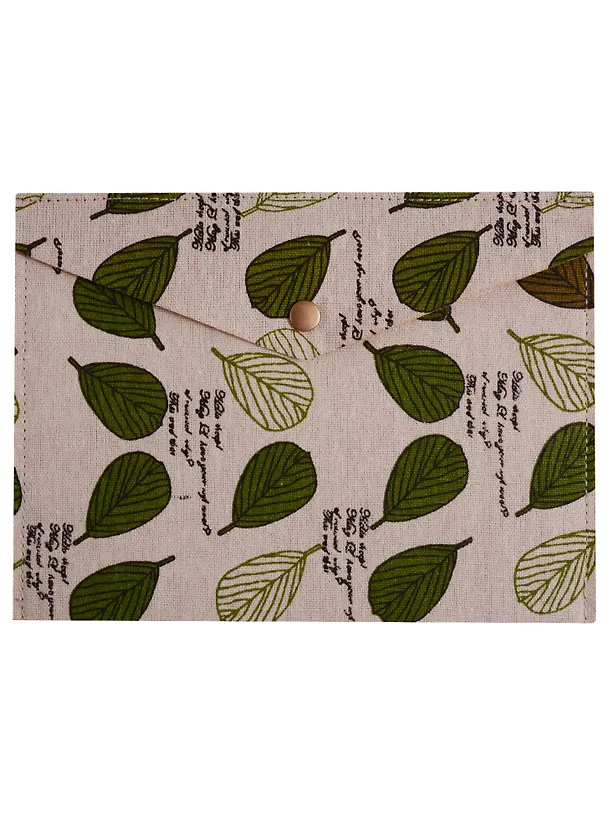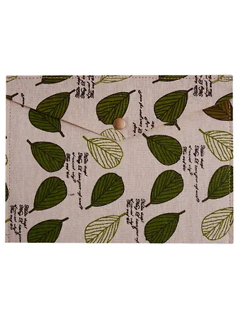 Папка-конверт пришла в дизайне не с листочками, как на картинке в карточке товара, а с совами. Сама папка своих денег не стоит, нитки торчат со всех сторон, края не обработаны. Обычная тетрадь лезет, но закрывается с трудом на кнопку. Материал такой, что будут катышки. Но какие то мелочи положить пойдёт.