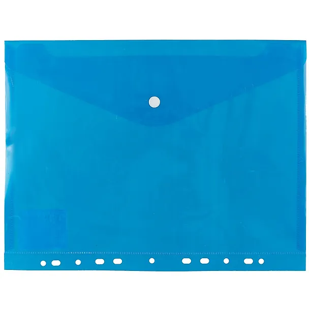 Заказала сразу 5 папок для документов. Пришли аккуратно запакованные, очень красивые - прозрачные и синие. Папка крепко закрывается на кнопку. Рада, что нашла с перфорацией и на кнопке, не во всех магазинах были в наличии. В целом довольна, рекомендую к покупке, теперь все материалы систематизированы.
