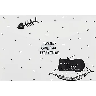 Папка-конверт Sad cat поможет держать бумаги в порядке дома, в школе или в офисе. Формат А4 подходит для распечаток, тетрадных листов, контрольных и рисунков, а застёжка на кнопке надёжно закрывает конверт, чтобы документы не выпадали в сумке или рюкзаке. Папка защищает листы от замятий и случайных пятен и при этом добавляет в учебные будни немного настроения с забавным котом.
