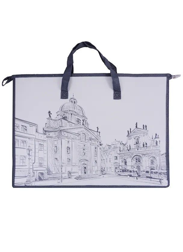 Папка для чертежей и рисунков арт.46607/12 ГОРОДСКАЯ ПЛОЩАДЬ (с ручками, А3, внутренний ПВХ карман (А4), плотность пластика 0,5 мм (500 мкм), 45x33х9, пластик, полноцветная запечатка дизайна, на молнии по верхнему краю)