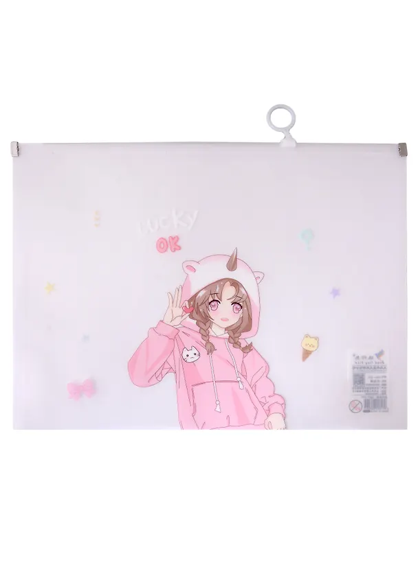 Хорошая папка с девушкой-аниме, её размеры, например, ширина целых 33 см, позволяют вместить в неё альбом, скетчбук. Также можно положить маркеры и другие принадлежности для рисования и творчества.