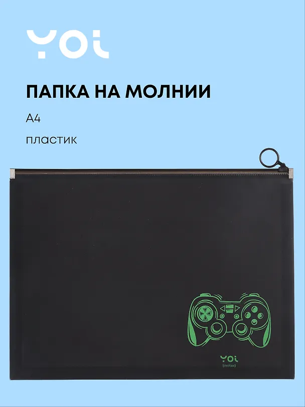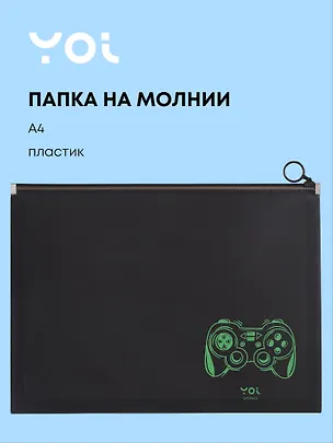 Папка на молнии А4 «Геймер» от Yoi — стильный аксессуар для тех, кто любит порядок и крутой дизайн! Чёрная основа с динамичным зелёным принтом выделит ваш стиль среди обычных папок.