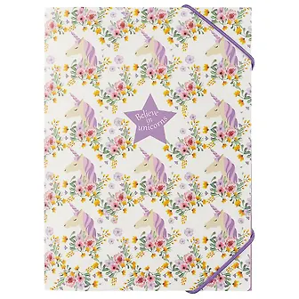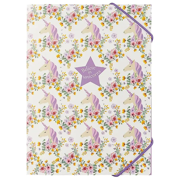 Папку украшает принт с единорогами в окружении прекрасных цветов. Посмотрите, разве эти лошадки не очаровательны?