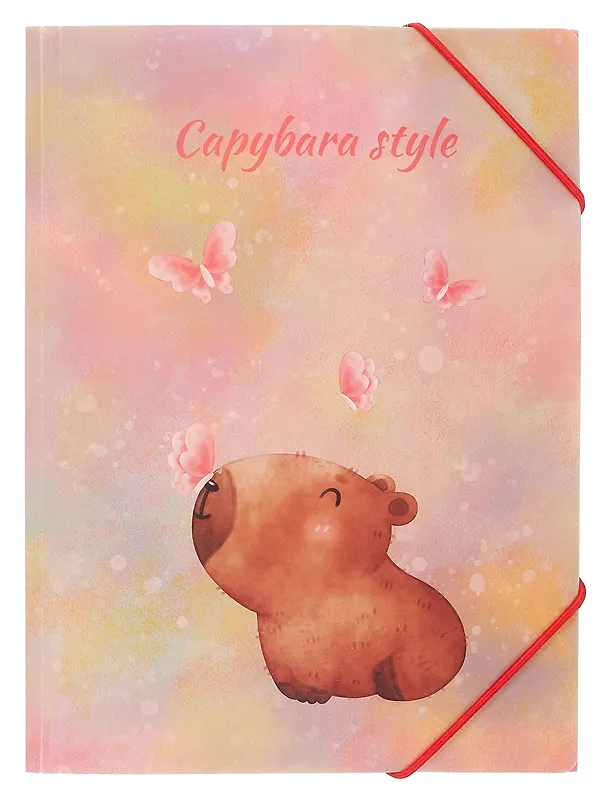 Эта очаровательная папка формата А5 с нежной капибарой и цветочком сделает хранение документов не только аккуратным, но и приятным. Надёжная резинка плотно фиксирует содержимое, защищая ваши бумаги от потерь и помятостей.