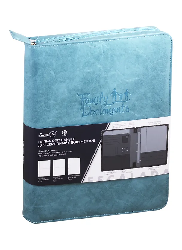 Папка-органайзер 340*260*40 "Линкольн" бирюзовая, кожзам с поролоном, карманы д/докум.