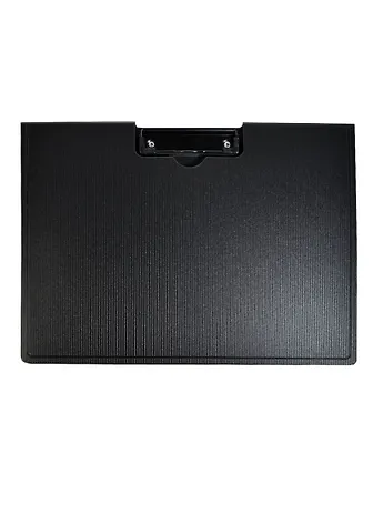 Планшет горизонтальный с крышкой, формата А4. Изготовлен из полипропилена толщиной 2,5 мм (2500 мкм). Внешняя сторона планшета имеет фактурный рисунок "полосы". Металлический прижим надежно фиксирует до 70 листов одновременно. Планшет идеально подхолит для записи на весу, для хранения и транспортирования документов.