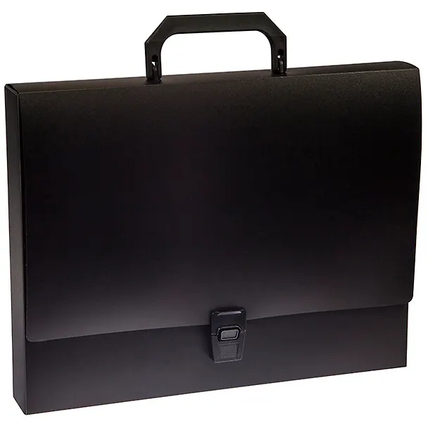 Папка-портфель 1 отделение OfficeSpace, изготовлен из пластика 600мкм, черного цвета. Предназначен для транспортировки документов, бумаг и различных предметов. Портфель застегивается на замок, имеет пластиковую ручку черного цвета. В ассортименте классические офисные цвета.