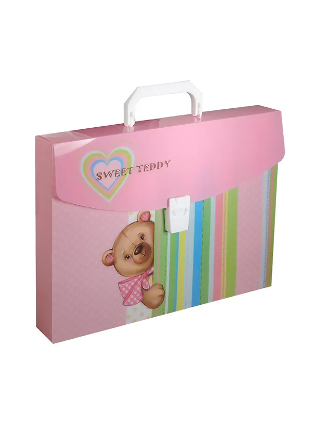 Папка-портфель 33,5*24,5*4см "МИШКА" замок, 1отд., печать на пластике, Феникс