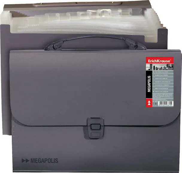 Папка-портфолио 12 отд. MEGAPOLIS, пластик, серая, Erich Krause