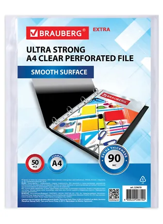 Папка-вкладыш А4 50шт перфорированные, EXTRA 900, гладкие, 90мкм