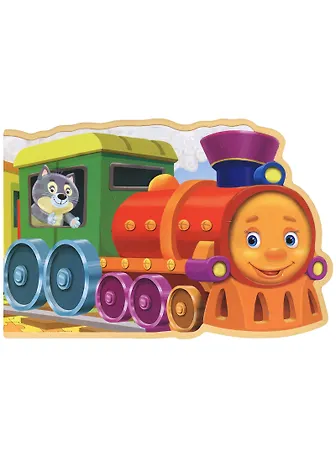 Паровозик. Хорошая книга для маленьких детишек- можно разглядывать картинки, они яркие. Можно водить пальчиком по контуру- книга картонная, ее даже жевать можно. Что мой сынок и делает. Цена нормальная, поэтому не жалко, а польза очевидна. Картонки- очень полезные книги для малышей.