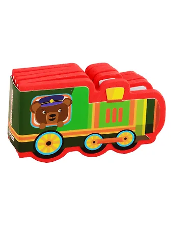 Яркая и привлекательная книжка, удобного для детских ручек формата, сделана из безопасного мягкого полимера в виде маленького игрушечного паровоза.