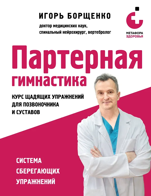 Наша спина каждый день испытывает нагрузки, когда мы ходим, стоим и даже сидим. Боли в пояснице, смещенные межпозвонковые диски, изношенные коленные и тазобедренные суставы — со временем они настигнут любого, кто не заботится о здоровье своего опорно-двигательного аппарата. Чтобы пациенты, которые уже имеют некоторые заболевания или испытывают трудности при обычной прогулке, могли полноценно двигаться и заниматься наравне со здоровыми людьми, автор книги, известный вертебролог Игорь Борщенко, разработал курс щадящих упражнений. Они позволяют эффективно избавиться от боли и укрепить мышечный корсет, а выполняются в партерных позах — то есть безопасных, в положении лежа или на четвереньках. Ре