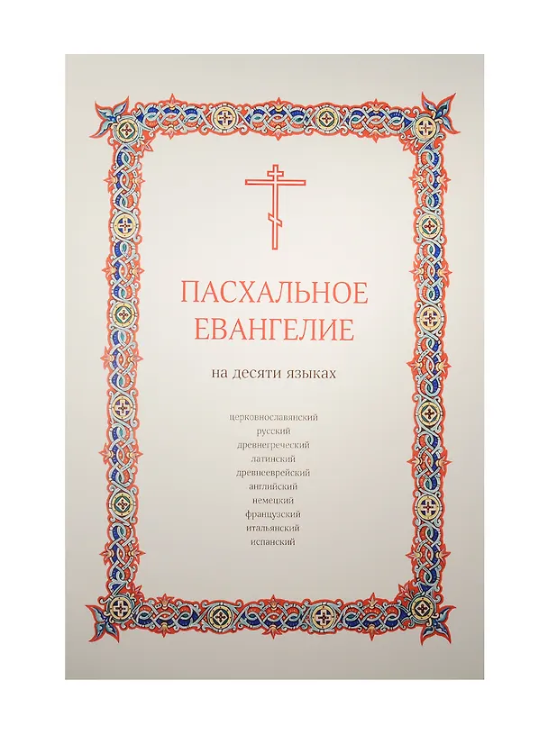 Пасхальное Евангелие на десяти языках: церковнославянский, русский, древнегреческий, латинский, древнееврейский, английский, немецкий, французский, итальянский, испанский