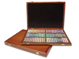 Профессиональная сухая пастель для художников. Изготовлена из пигментов высшего качества с добавлением небольшого количества каолиновой глины.. Обладает яркими тонами и имеет высочайшую светоустойчивость. Пастель хорошо ложится на бумагу, растушевывается, смешивается и размывается, создавая при этом необходимые оттенки . Мелки обладают средней мягкостью. Прекрасно подходит для всех техник работы с пастелью. Квадратное сечение, 10±1 × 10±1 × 66мм ± 5мм . Ярлык с номером цвета и названием, который размещен на блоке пастели, поможет в дальнейшем дополнить и восполнять профессиональные наборы. Подарочный набор 72 цвета, в деревянной коробке. Оберегать от влаги/ударов
