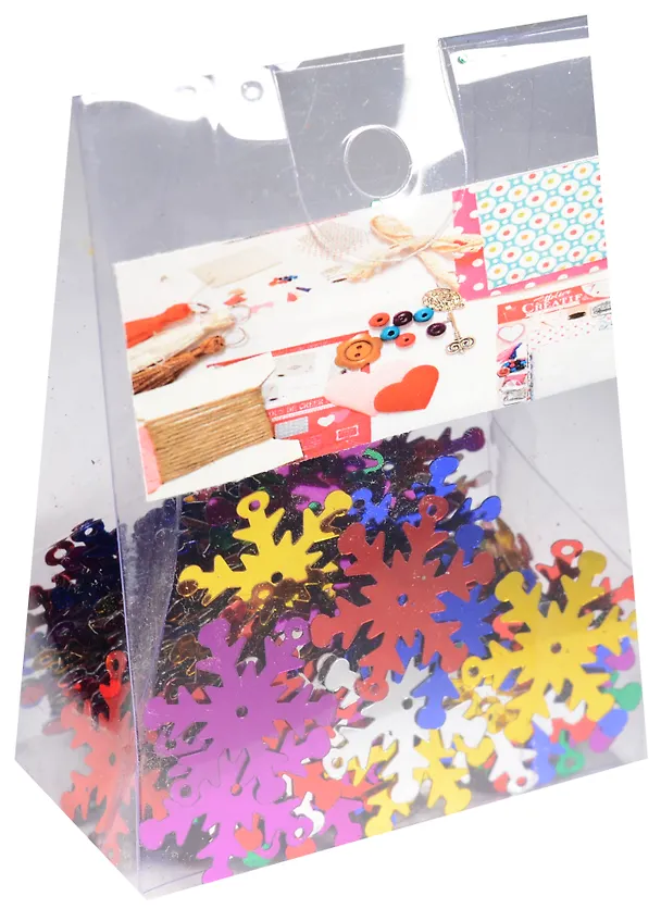 Пайетки в пластиковой упаковке с наклейкой, снежинки яркий микс (11-24140-J10)
