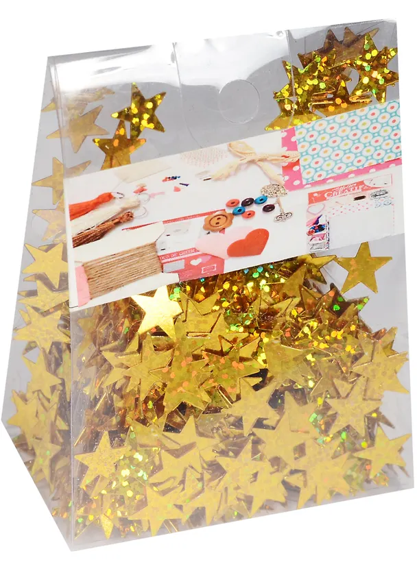 Пайетки в пластиковой упаковке с наклейкой, звездочки золотые (11-24140-J13)