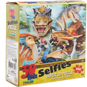 Пазл 100 Super 3D Kids Динозавры селфи (31х23) (5+) (13604) (коробка)