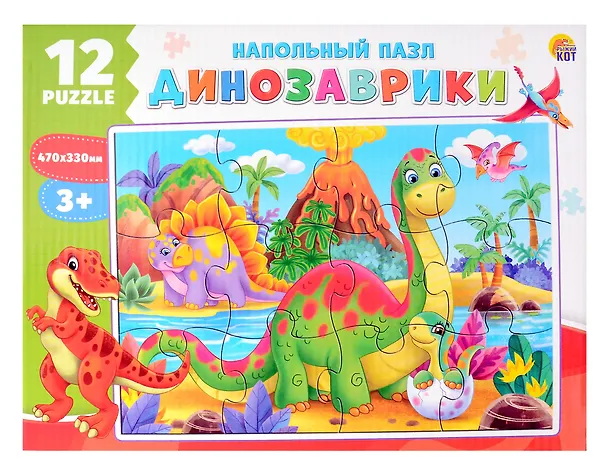 Хорошие пазлы. Деталей всего 12, подойдут для малышей, которые только учатся собирать пазлы. Детали очень большие, просто огромные! Изготовлены из плотного картона. Рисунок очень яркий и красочный. С этих пазлов можно начать знакомство ребёнка с диназаврами.