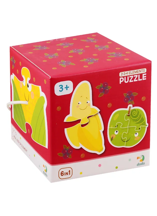 Пазлы - очень увлекательная игра. Для самых маленьких детей они содержат небольшое количество элементов, а собранные из них цветные картинки знакомы и понятны малышам. Пазл 2-3-4 элемента «Фрукты-овощи» представляет собой фигурные пазлы, которые изображают яркие, сочные, вкусные фрукты и овощи. Все они состоят из разного количества элементов: из двух, трех или четырех, что позволяет выполнять задания, начиная с самого простого и постепенно усложнять их. После того, как ребенок правильно составит пазлы, перед его глазами предстанут: яблоко, капуста, кукуруза, морковь, банан, клубника. В процессе таких упражнений у малыша будет развиваться образное и логическое мышление, восприятие отдельных и
