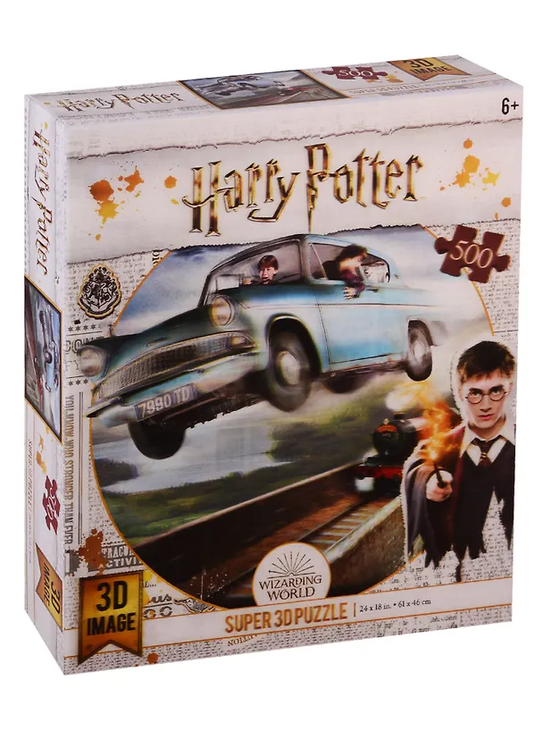 Линзовидные (лентикулярные) пазлы с эффектом трехмерного объемного изображения Super 3D пазл"Летающая машина" ("Harry Potter’s Ford Anglia"). 500 фрагментов, размер собранного пазла: 61 х 46 см, лицензия Harry Potter. Картонная коробка c 3D стерео картинкой на лицевой стороне. Рекомендуется детям с 6-ти лет.