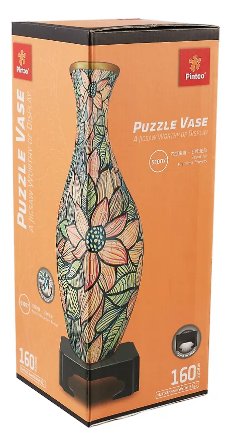 Производитель этой красоты - тайваньский Пинту, специализирующийся на пазлах из пластмассы. В этой вазе, как и в других пластмассовых пазлах, самое сложное не собрать его, а разобрать - не сломав. Сцепка мёртвая, и при разборке надо проявить ооочень много аккуратности и терпения.