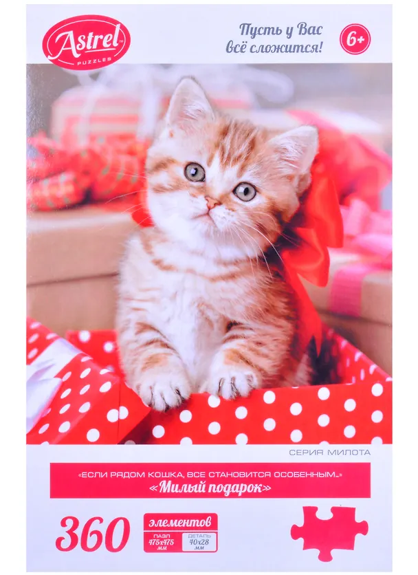 Милые котята и щенята, изображенные на пазлах из 360 элементов линейки Astrel, вызывают умиление и настраивают на позитивный лад! Каждый пазл является уникальным украшением интерьера, соберите всю коллекцию картин, которые сделают уютным и добрым каждый дом!