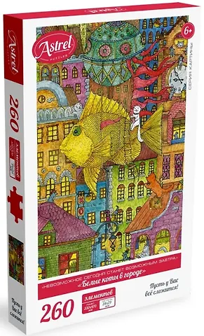 Пазл 260 элементов из новой серии Astrel захочется собрать и взрослым и детям, ведь сборка пазла - это отличное времяпрепровождение для всей семьи! Пазлы развивают логику, внимательность и мелкую моторику. Позвольте себе отдых от ежедневной суеты!