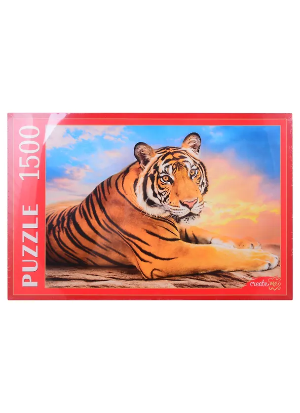 Пазл "БОЛЬШОЙ ТИГР НА ЗАКАТЕ " никого не оставит равнодушным! Такой занимательный досуг прекрасно развивает мелкую моторику рук, память и внимание. Изготовлено из картона высокого качества. Количество элементов: 1500 шт. Размер поля: 58х85 см.