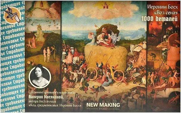 Пазл – это хорошо. Пазл по шедевру мирового искусства – ещё лучше. Пазл с картиной Босха – дайте пять! Разглядывать загадочные работы нидерландского художника и без того интересно, но когда вы своими руками складываете шедевр с рыболюдьми, огромной синичкой и музыкальными инструментами (в самых неподходящих для этого местах), удовольствия получаете не меньше. Есть время всё как следует рассмотреть и подумать о вечном. Тем более что в коробке с тысячью красочных элементов вас ждёт ещё один сюрприз – буклет с объяснением художественных образов картины, составленный профессиональным культурологом. Такой пазл станет отличным подарком ценителям средневекового искусства или другу, который постоянн