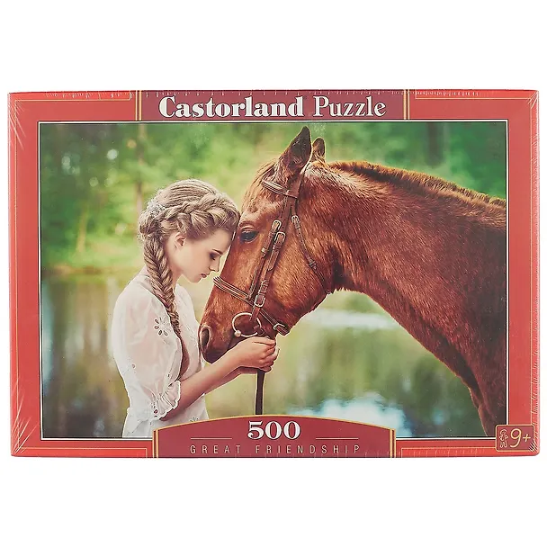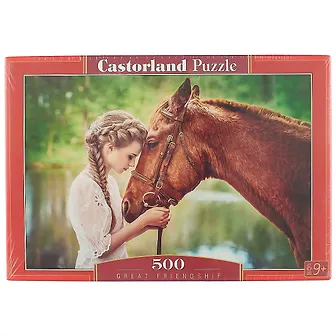 Картинка симпатичная и какая-то щемящая, даже слезы наворачиваются. Качество принта на пазлах просто идеальное - картинка получается четкой, хорошо пропечатанной и хочется на нее смотреть и наслаждаться. Идеальный вариант для сборки перед грядущим годом лошади и чтобы украсить ею комнату. Довольно сложная при сборке - особенно лошадь и фон. Очень понравилось.