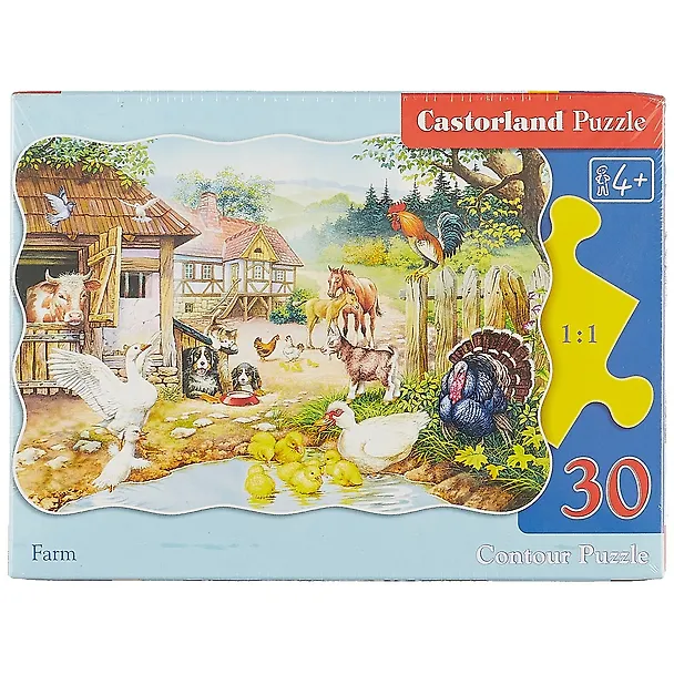 Сын 2,2 его выбрал сам, очень понравился сюжет. Мы называем его "у бабушки в деревне". Была удивлена, что внутри запечатанного пакетв некоторые пазлы оказались деформированы. Впервые сталкиваюсь с таким у Castorland. Некоторые пазлы плохо стыкуются, но это исключение из правила. У нас несколько наборов Castorland, они чудесные. Учим животных, сын научился отличать гуся от утки. С удовольствием звукоподражает всем животным на картинке. Маркировка 4+ выглядит странно, ребенок в 2,2 собирает самостоятельно.