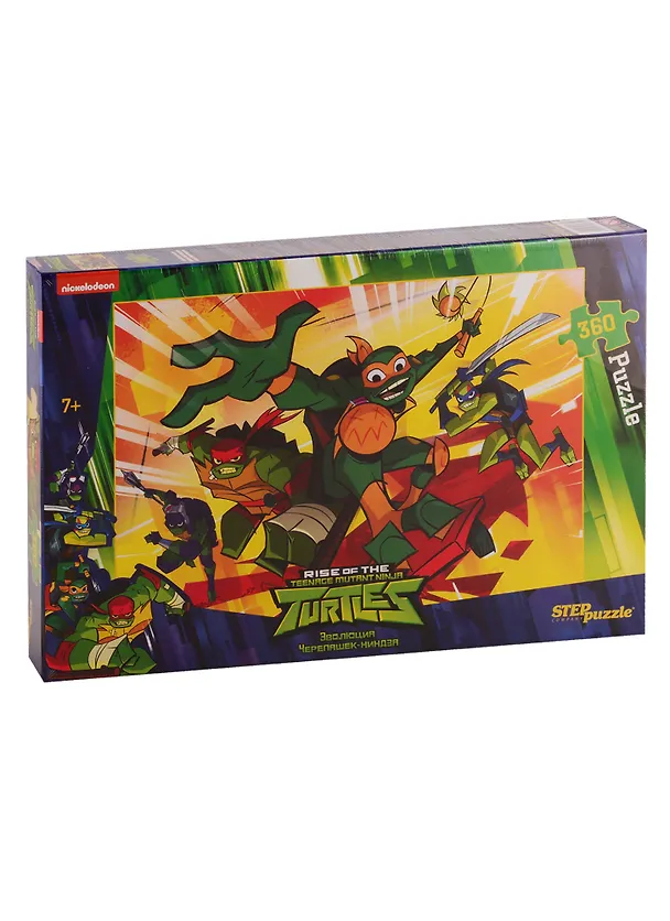 Пазл «Черепашки Ниндзя» состоит из 360 деталей. На картинке мы видим всех главных героев мультфильма «Эволюция Черепашек-ниндзя».