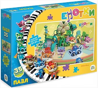 Большой пазл 35 элементов серии "Енотки" понравится любому ребенку, а сборка яркой картинки принесет радость не только малышам, но и их родителям. Крупные детали пазла удобно ложатся даже в самую маленькую ручку! Соберите всю коллекцию новых пазлов!