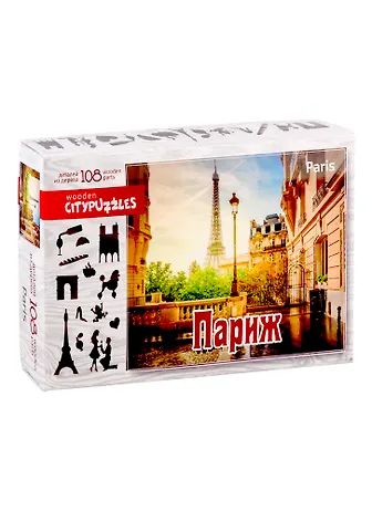 CITYPUZZLES – серия деревянных пазлов с изображениями самых известных городов мира. Деревянные элементы пазла представляют из себя как детали по мотивам достопримечательностей и символов города, так и детали причудливых форм. Нанесение изображения сделано методом прямой экопечати, это позволило сохранить для вас структуру и приятный запах дерева. Вариант игры для детей: попросите ребенка собрать элементы достопримечательностей, назвать их и рассказать, что ребенок о них знает. Сборка пазла доставит вам визуальное и тактильное удовольствие!